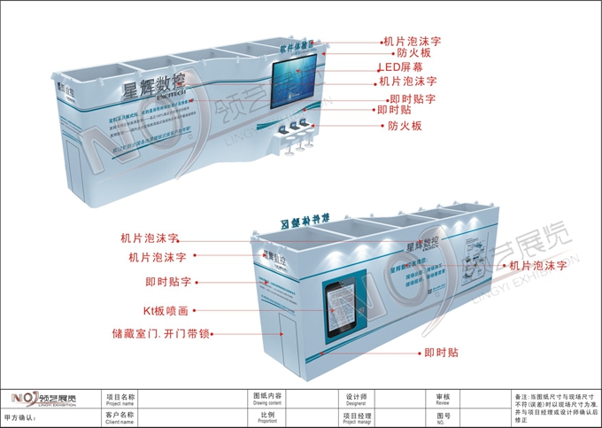 契合星輝數(shù)控的品牌形象和產(chǎn)品特性,采用框型結(jié)構(gòu),再搭配燈具燈光的效果,襯托出展位簡約、便捷的氛圍,突出一種精致、簡約的時尚品味。