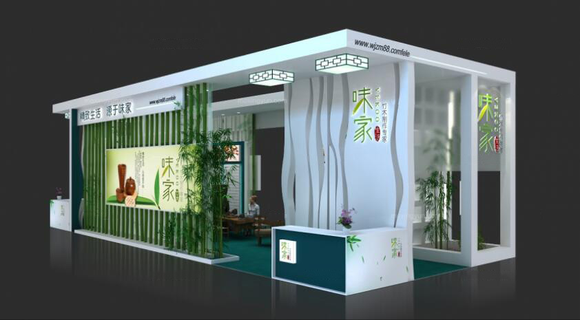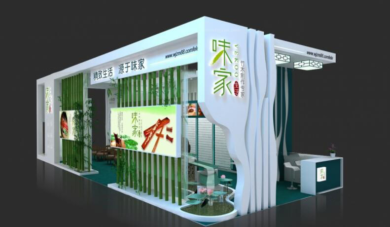 契合味家的品牌形象和產(chǎn)品特性,采用矩形結構,再搭配燈具燈光的效果,襯托出展位大氣、豪華的氛圍,突出一種簡約、時尚的品味。
