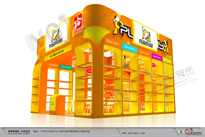 巧妙的運用橙色、黃色作搭配,著重突出品牌和產(chǎn)品的展示,使整個展位大氣又明快。