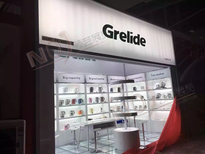契合格來德的品牌形象和產(chǎn)品特性,采用框型結(jié)構(gòu),再搭配燈具燈光的效果,襯托出展位自由、簡約的氛圍,突出一種現(xiàn)代、舒適的時尚品味。