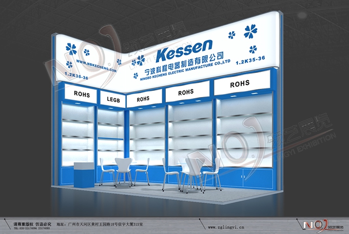 契合的科程品牌形象和產(chǎn)品特性,采用矩形結(jié)構(gòu),再搭配燈具燈光的效果,襯托出展位時尚、簡約的氛圍,突出一種現(xiàn)代、活力的時尚品味。
