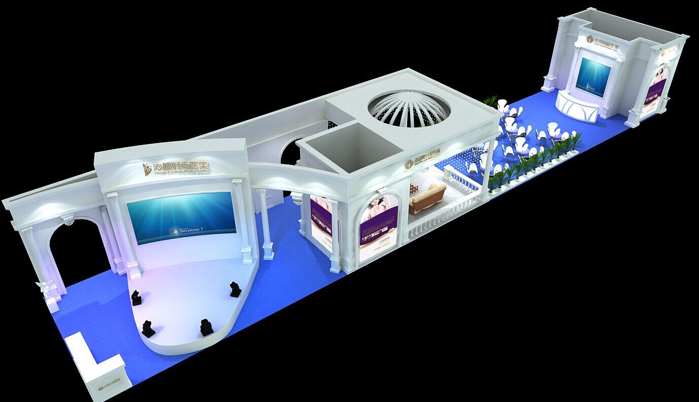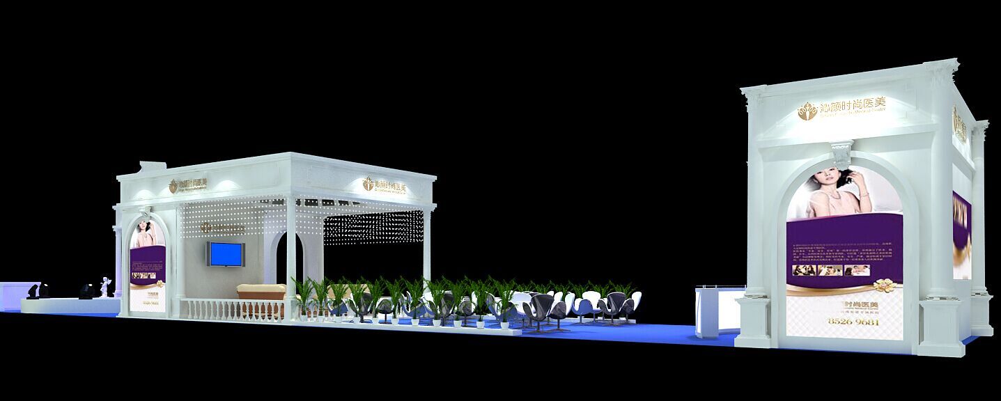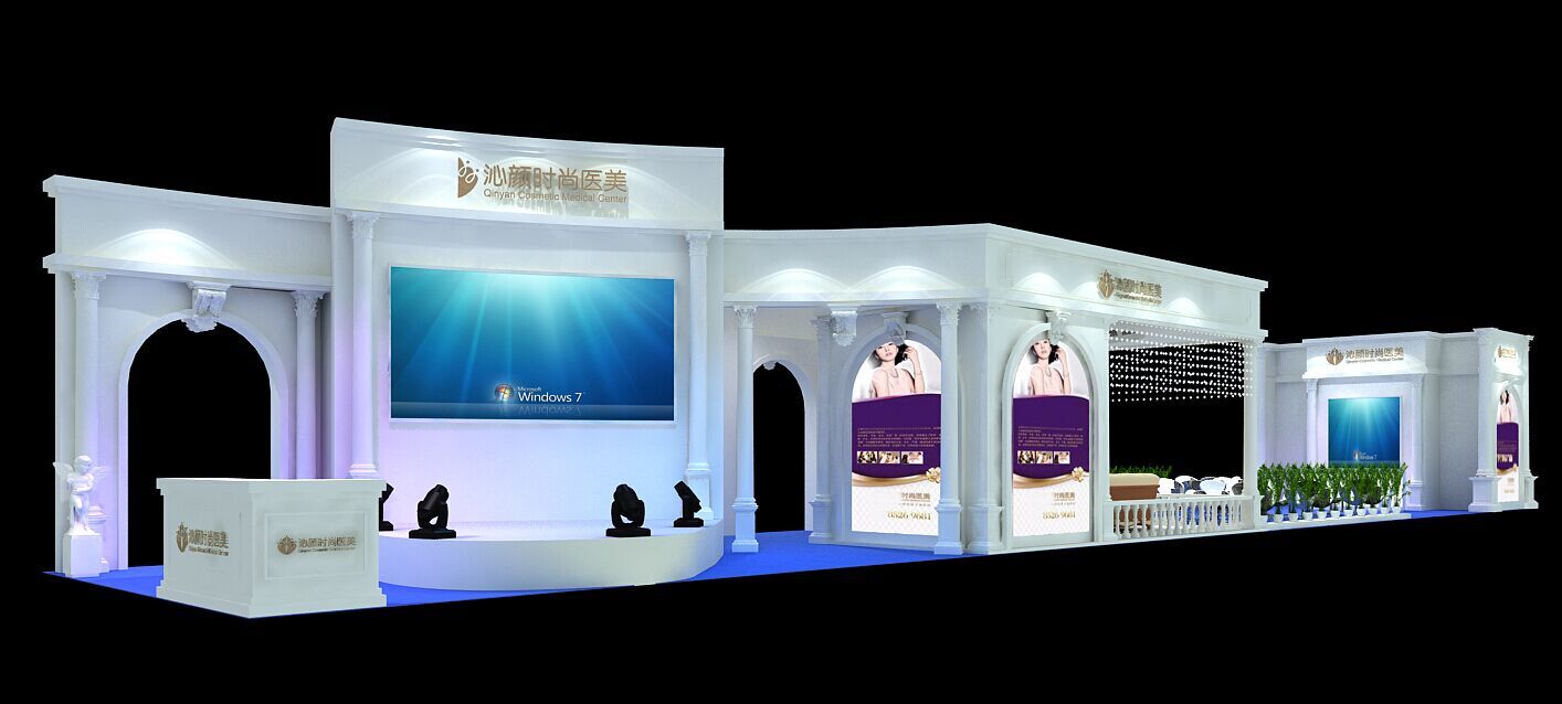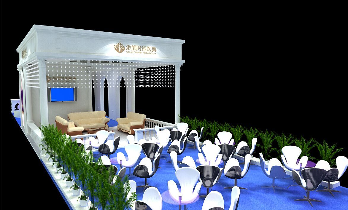 契合沁顏的品牌形象和產(chǎn)品特性,采用矩形結(jié)構(gòu),再搭配燈具燈光的效果,襯托出展位高端、時(shí)尚的氛圍,突出一種現(xiàn)代、大氣的時(shí)尚品味。