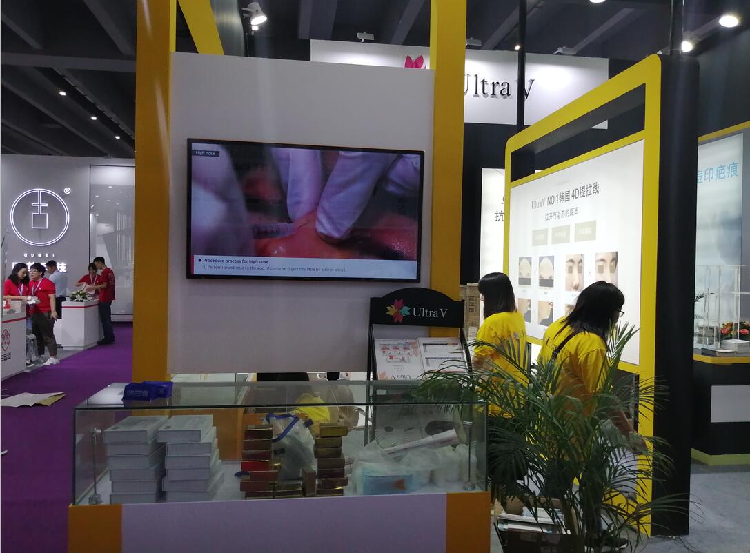 契合Ultra V的品牌形象和產品特性,采用弧型結構,再搭配燈具燈光的效果,襯托出展位大氣、豪華的氛圍,突出一種簡約、時尚的品味。