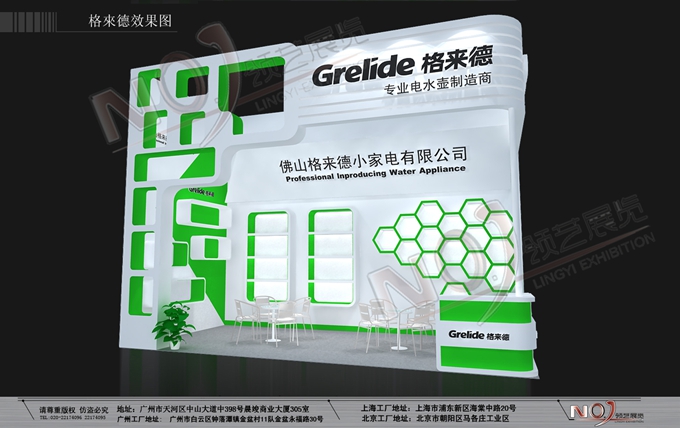 契合格來德的品牌形象和產(chǎn)品特性,采用框型結(jié)構(gòu),再搭配燈具燈光的效果,襯托出展位自由、簡約的氛圍,突出一種現(xiàn)代、舒適的時尚品味。