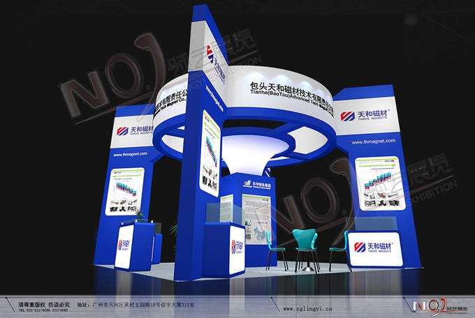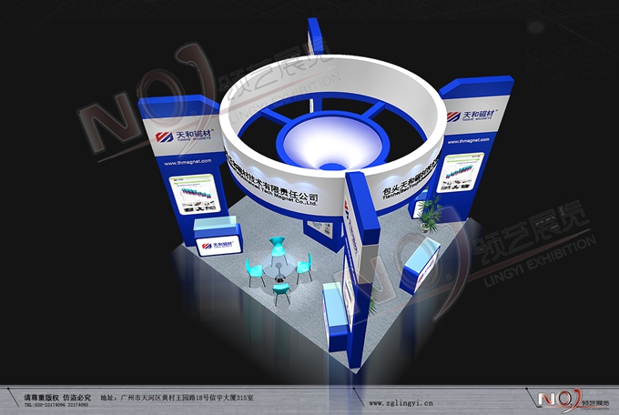 契合天和磁材的品牌形象和產(chǎn)品特性,采用曲線、框型結(jié)構(gòu),再搭配燈具燈光的效果,襯托出展位簡約、舒適的氛圍,突出一種躍動、簡約的時尚品味。