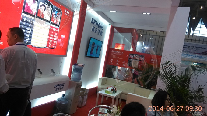 契合易豐手機的品牌形象和產(chǎn)品特性,采用框型結(jié)構(gòu),再搭配燈具燈光的效果,襯托出展位簡約、便捷的氛圍,突出一種精致、簡約的時尚品味。