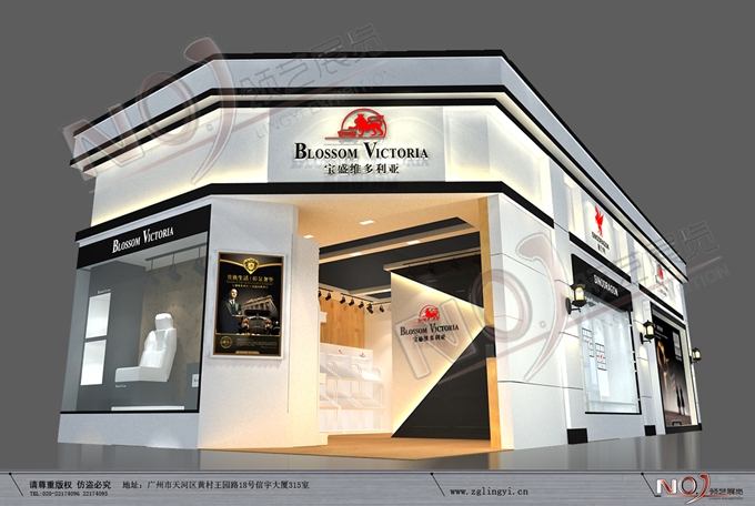 契合寶盛的品牌形象和產(chǎn)品特性,采用矩形結構,再搭配燈具燈光的效果,襯托出展位簡約、時尚的氛圍,突出一種現(xiàn)代、簡約的時尚品味。