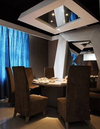 在對(duì)面的利用中,使用條形或整幅的鏡面玻璃形成虛中見實(shí)的視錯(cuò)覺效果,是展示設(shè)計(jì)較為常用的一種視錯(cuò)覺處理辦法。在陳列布置上巧妙的利用鏡子將有助于制造假象,在視覺上擴(kuò)大空間范圍。此外鏡子還能產(chǎn)生一種虛幻的對(duì)稱效果。
