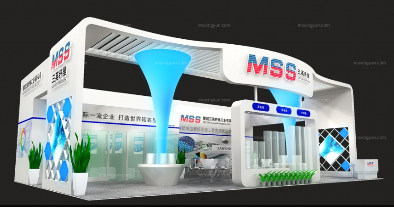 契合三英纖維的品牌形象和產(chǎn)品特性,采用線條,再搭配燈具燈光的效果,襯托出展位簡約、舒適的氛圍,突出一種現(xiàn)代、高端的時尚品味。
