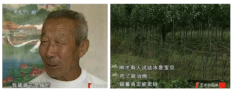 河北一個農(nóng)村上空突然掉下來兩塊冰,全村人都來圍觀,還有人上前品嘗,據(jù)說還“挺好吃的”。一老頭抱了兩塊回冰箱里凍著,說這叫無根之水,每日一舔,可包治百病。