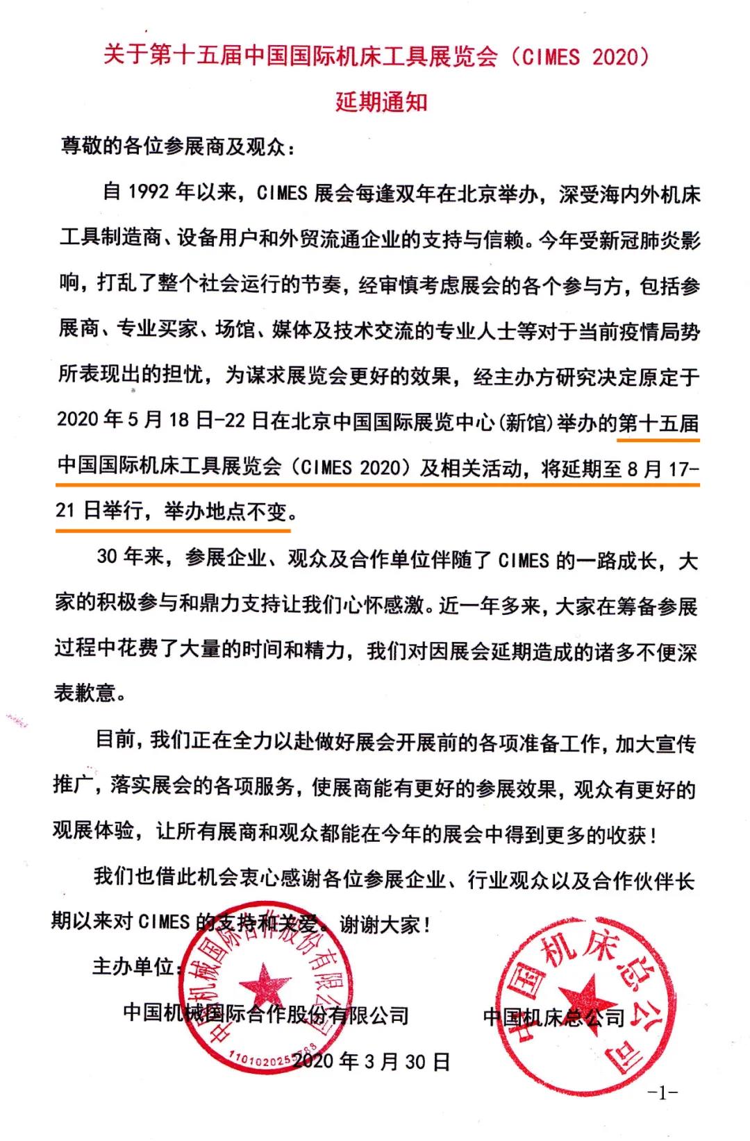 根據(jù)機(jī)床展設(shè)計(jì)搭建公司領(lǐng)藝展覽了解到,CIMES北京機(jī)床展定檔啦!2020年8月17-21日,在一起再出發(fā)!如需機(jī)床展設(shè)計(jì)請聯(lián)系領(lǐng)藝展覽,希望我們能在機(jī)床展搭建上為您添磚加瓦,祝各位朋友收獲多多,滿載而歸!