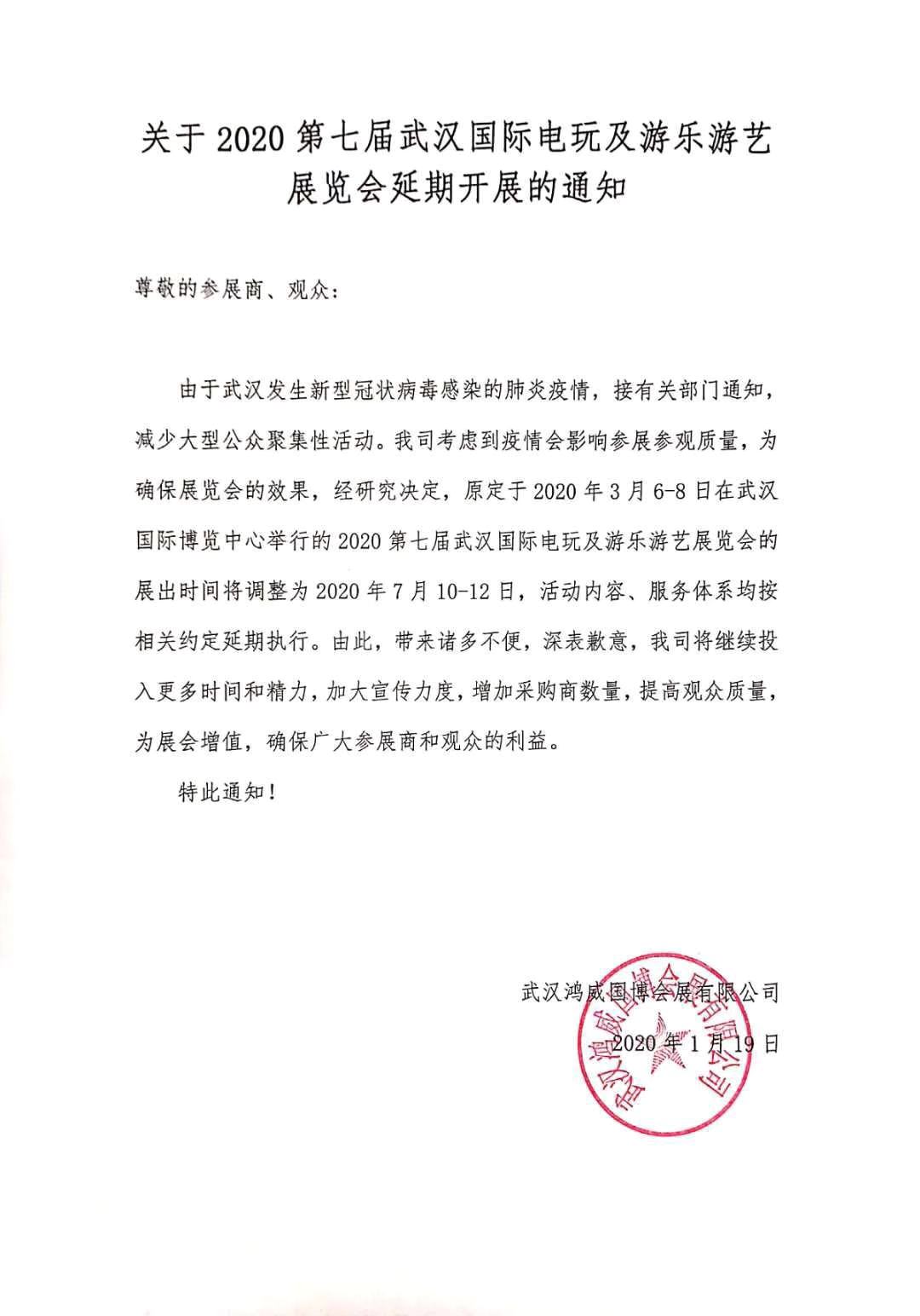 根據(jù)武漢電玩游樂(lè)設(shè)備展設(shè)計(jì)搭建公司領(lǐng)藝展覽解到,鑒于目前全國(guó)發(fā)生“新型冠狀病毒感染肺炎”疫情,為了積極響應(yīng)及配合疫情防控工作,確保各參會(huì)人士的安全與健康,并保證參會(huì)效果,原定于2020年3月6日-8 日在武漢國(guó)際博覽中心舉辦的2020第七屆武漢國(guó)際電玩及游樂(lè)游藝展覽會(huì)將正式延期至2020年7月10日-12日舉辦地點(diǎn)維持不變。如需武漢電玩游樂(lè)設(shè)備展設(shè)計(jì)請(qǐng)聯(lián)系領(lǐng)藝展覽,希望我們能在武漢電玩游樂(lè)設(shè)備展搭建上為您添磚加瓦,祝各位朋友收獲多多,滿載而歸!