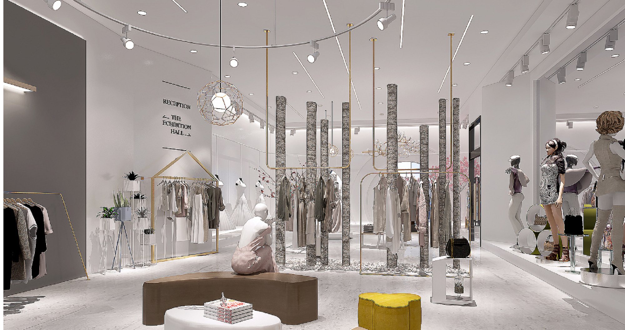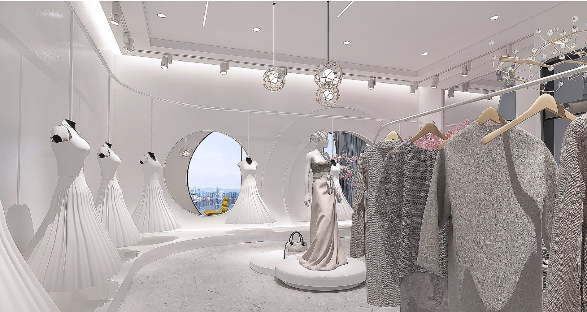 契合EIsissil服裝的品牌形象和產(chǎn)品特性,采用開放式結(jié)構(gòu)進行合理的分區(qū),再搭配燈具燈光的效果,襯托出展廳大氣、豪華的氛圍,突出一種簡約、時尚的品味。