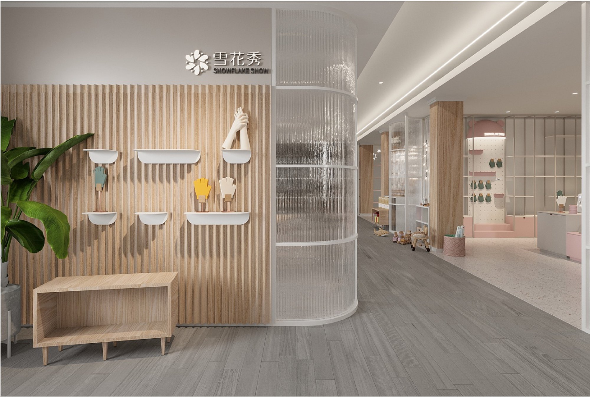 契合雪花秀的品牌形象和產(chǎn)品特性,采用開放式結(jié)構(gòu)進行合理的分區(qū),再搭配燈具燈光的效果,襯托出展廳大氣、豪華的氛圍,突出一種簡約、時尚的品味。