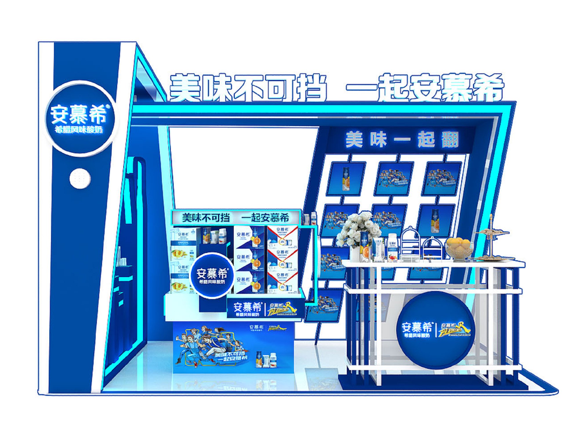 巧妙的運用藍色作搭配,著重突出品牌和產(chǎn)品的展示,使整個展位時尚新穎巨有活力。