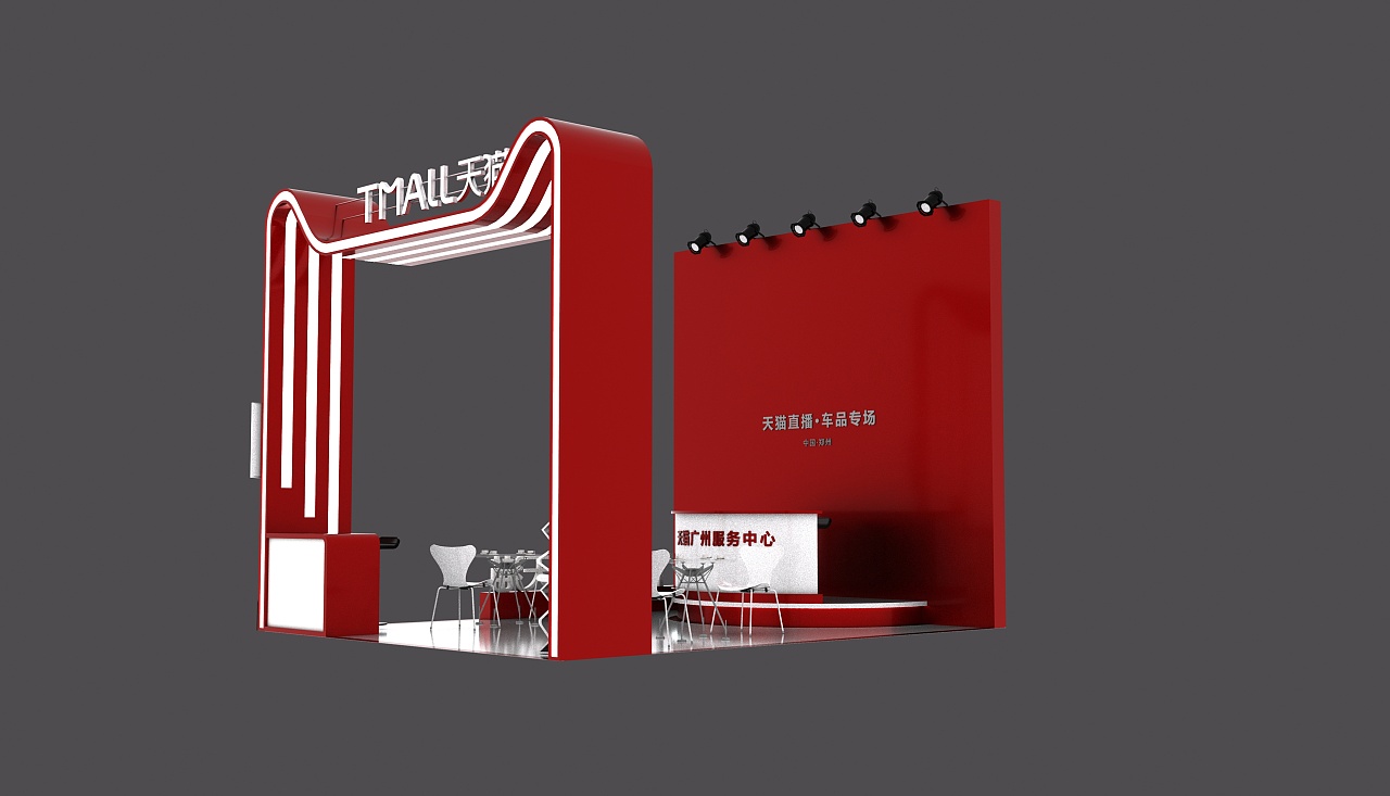 契合天貓的品牌形象和產(chǎn)品特性,采用開放式結(jié)構(gòu)進(jìn)行合理的分區(qū),再搭配燈具燈光的效果,襯托出展廳大氣、豪華的氛圍,突出一種簡(jiǎn)約、時(shí)尚的品味。